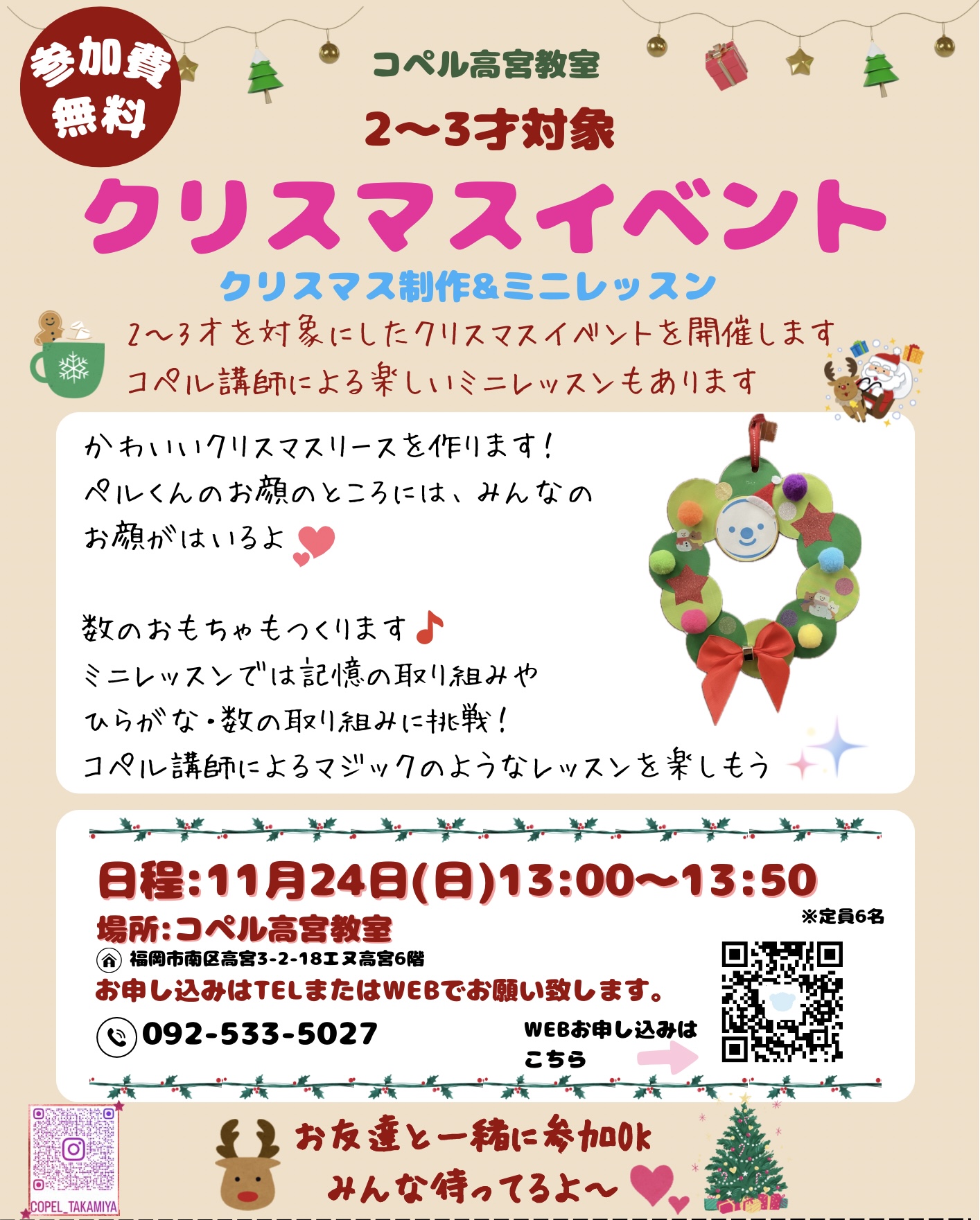 クリスマスリース制作とミニレッスンを体験いただけます✨