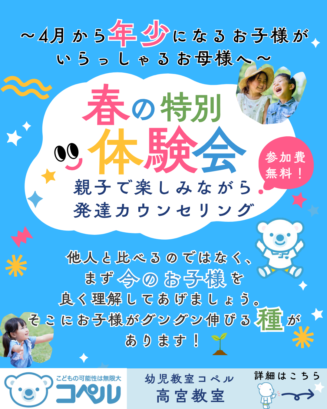 「コペルに通っている方からのご紹介で入会されるケースが多いのは、お子様の変化を体感できる幼児教室だからです。」