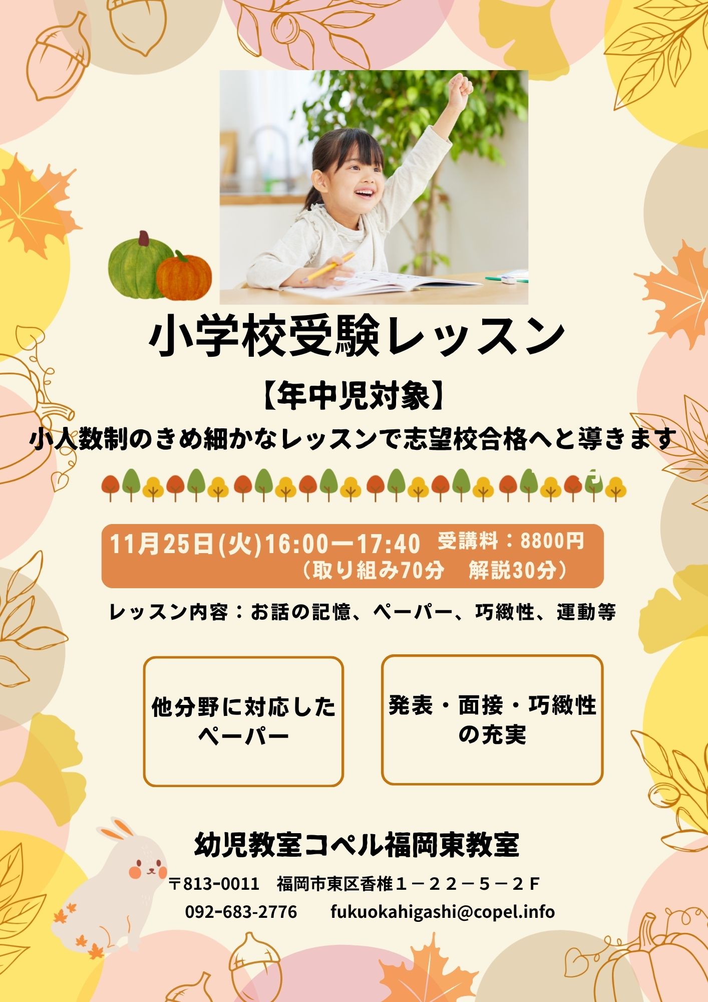 すべての幼稚園受験に対応。母子分離のレッスンで、入園後も役立つカリキュラムです。