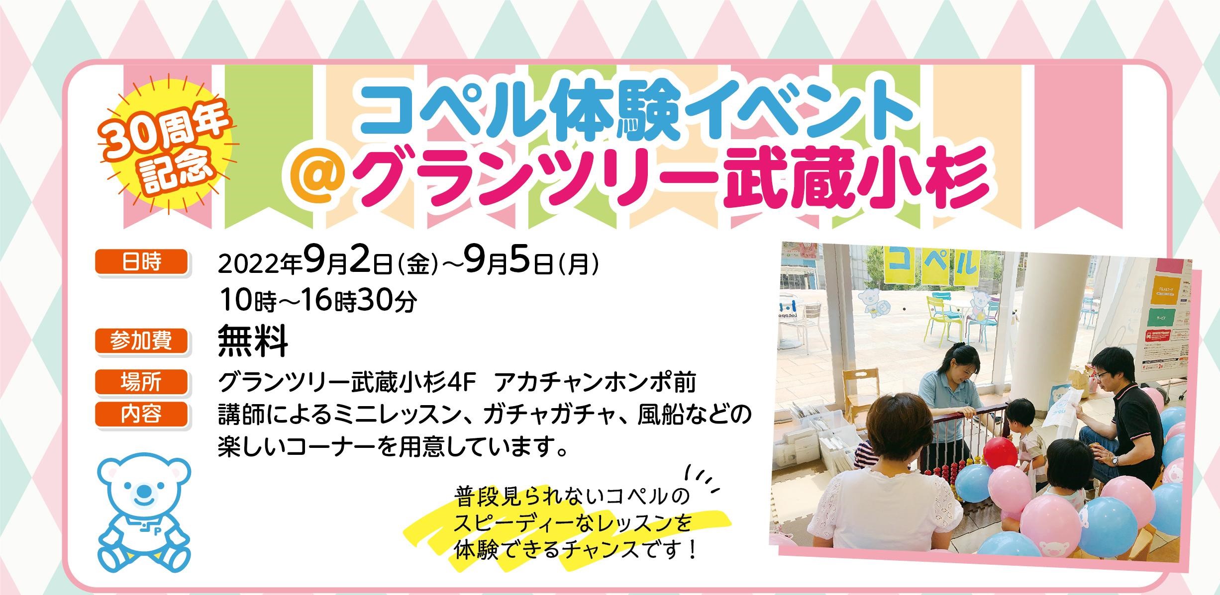 【コペル 武蔵小杉教室】9/2-9/4開催 コペル体験イベント!