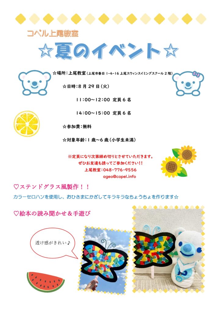 8月29日(火)夏休み制作イベントを開催いたします🌻