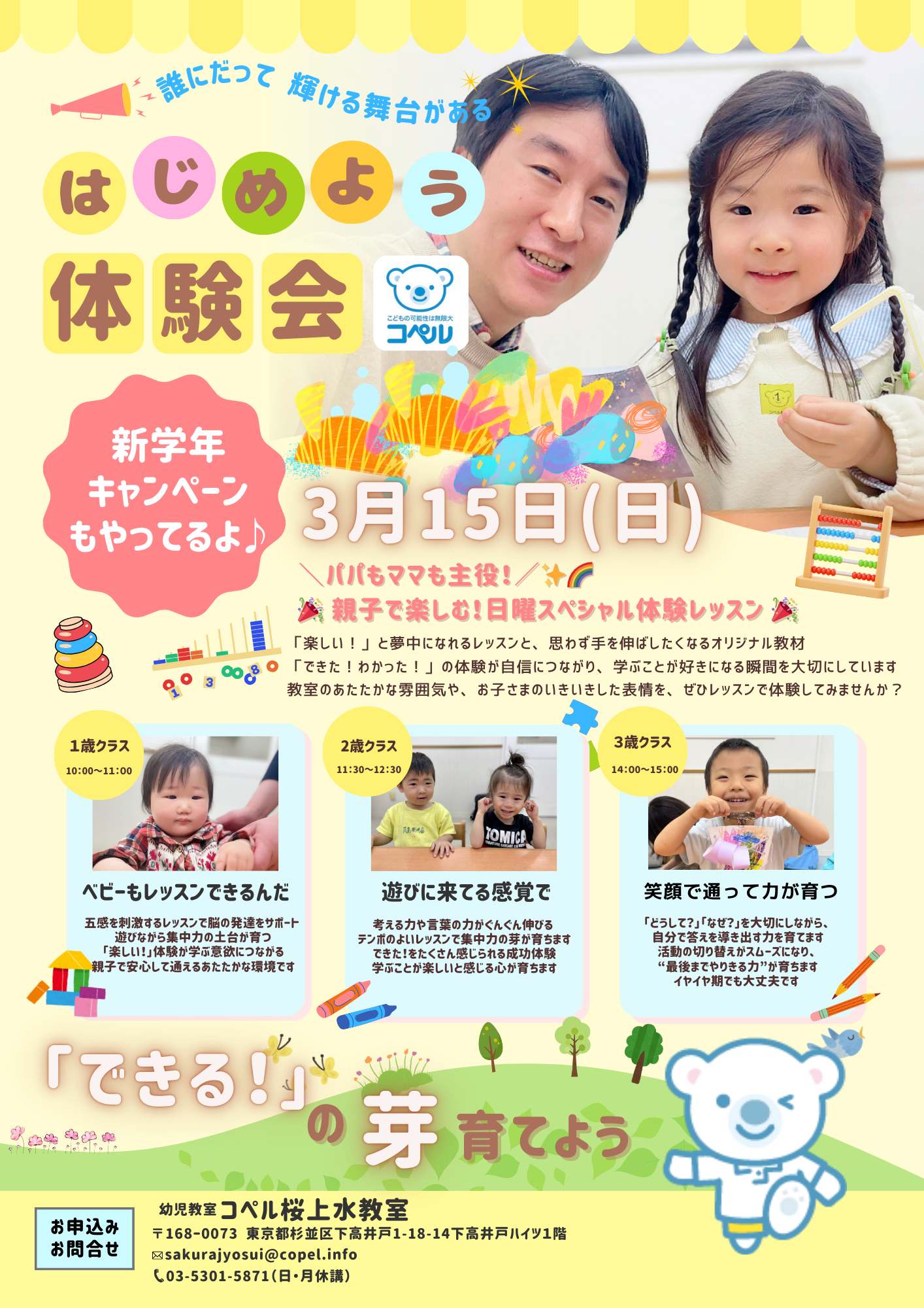 ③14 :00~15:00 新3歳クラス(2023年4月~2024年3月生まれ)