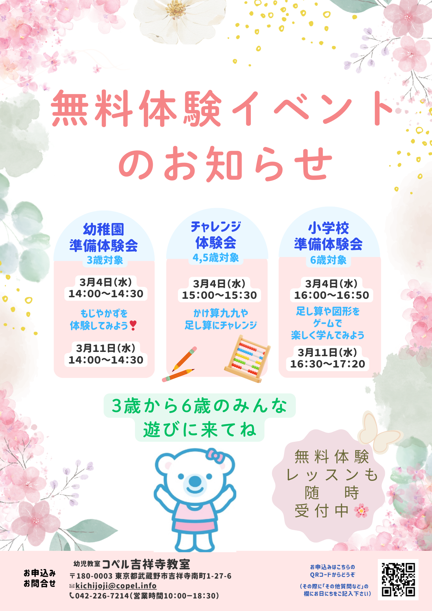 すべての幼稚園受験に対応。母子分離のレッスンで、入園後も役立つカリキュラムです。