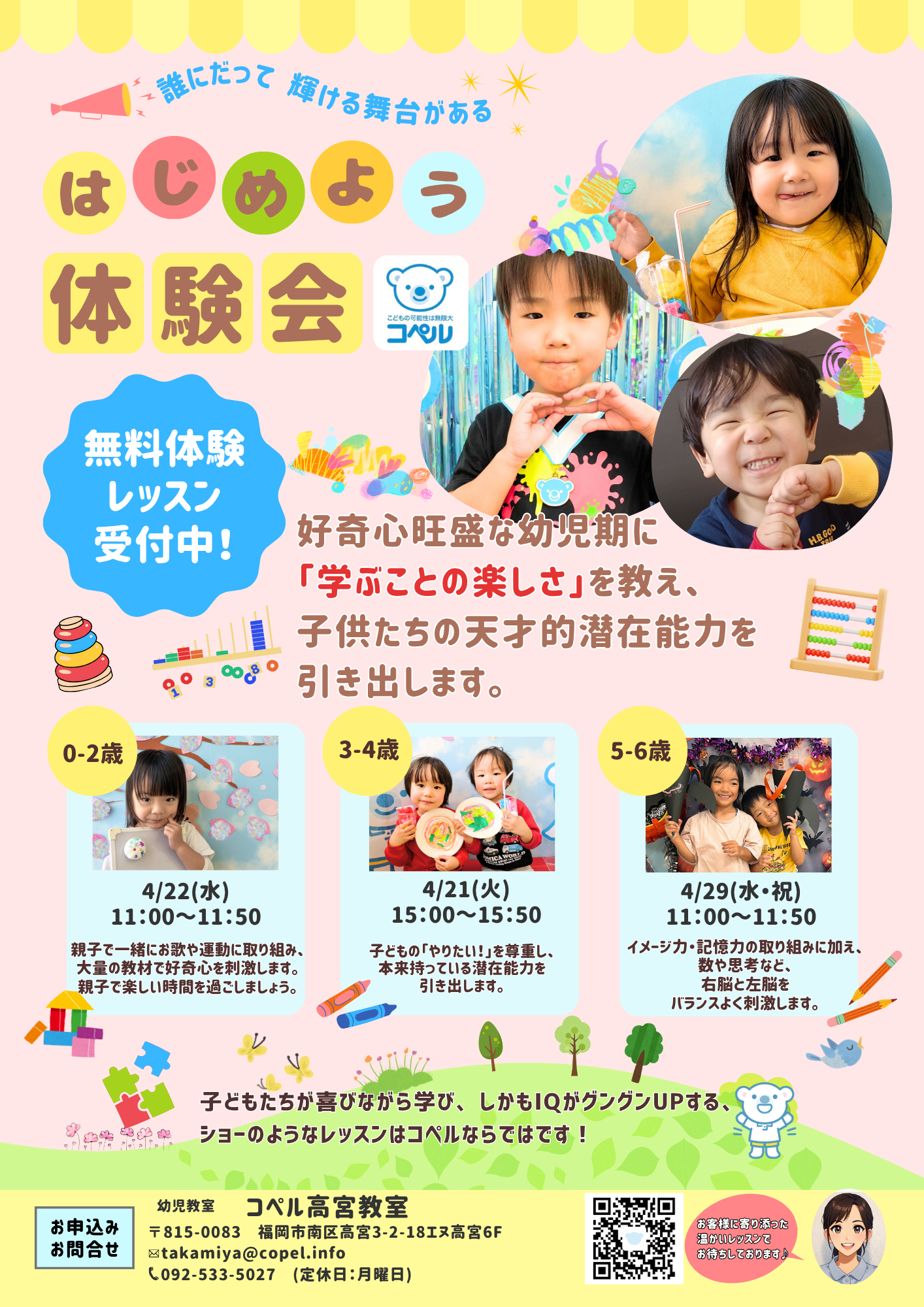 発達の遅れが気になるお子様は「児童発達支援スクール コペルプラス」もご覧ください。