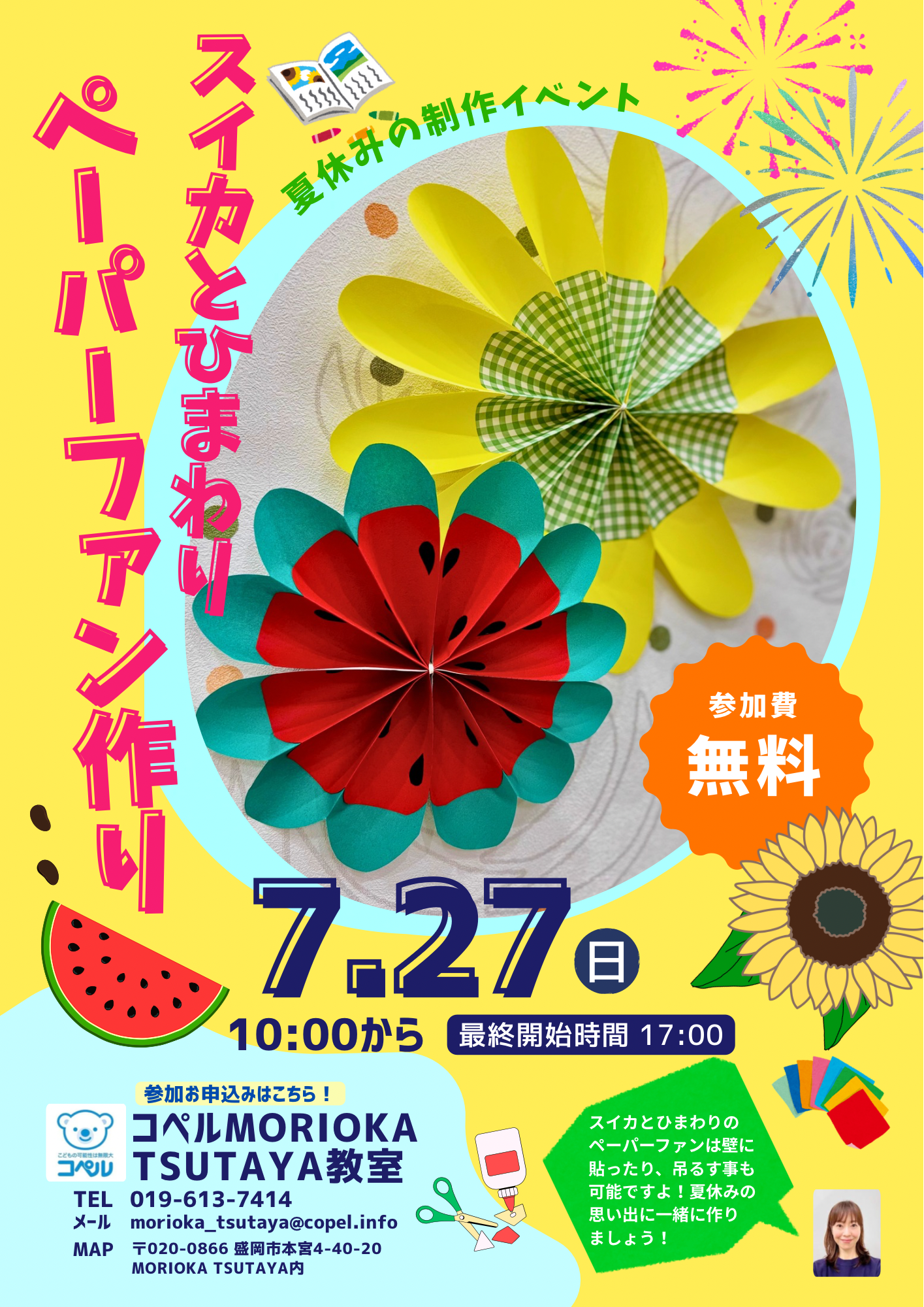 MORIOKATSUTAYA教室│スイカとひまわりのペーパーファン作り
