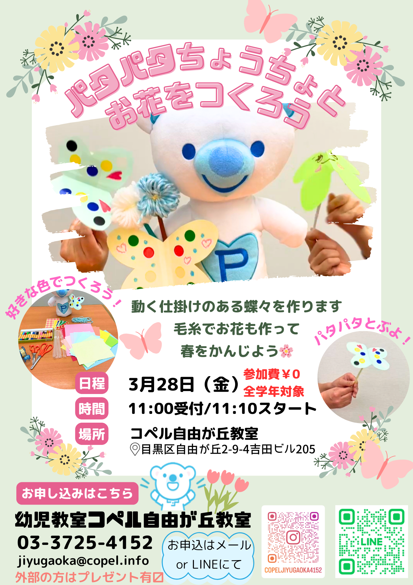 自由が丘教室│パタパタちょうちょとお花をつくろう