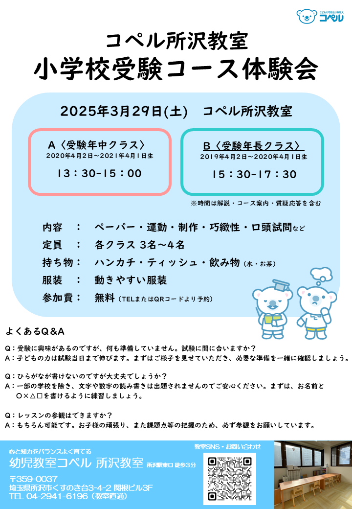 所沢教室│【年長・年中対象】小学校受験コース体験会