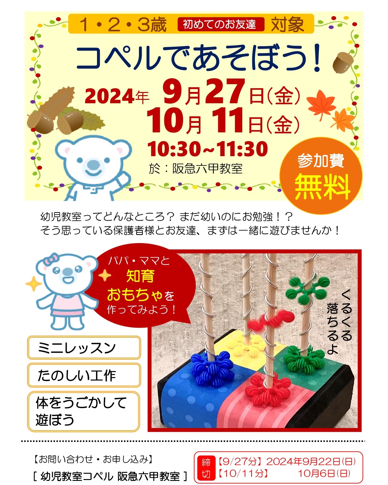 阪急六甲教室│【無料】1・2・3歳対象!くるくる回るおもちゃを作ろう