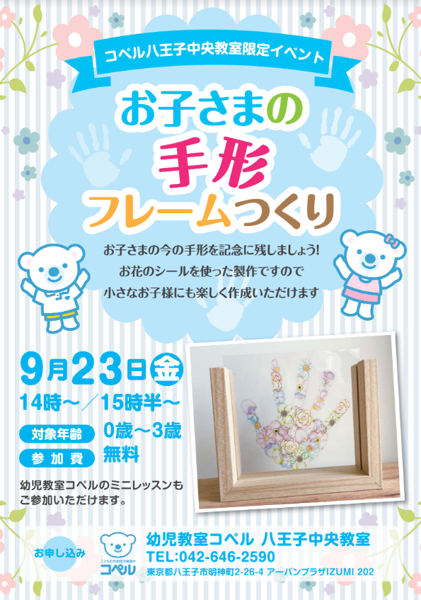 【コペル 八王子教室】9/23開催 手形フレームづくりイベント!
