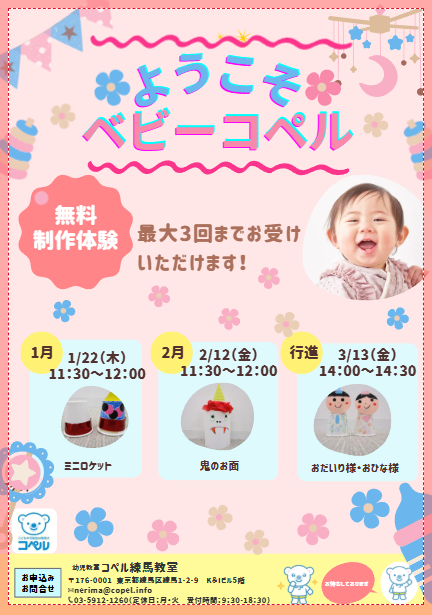練馬教室│🌼制作イベント🌼ようこそベビーコペル