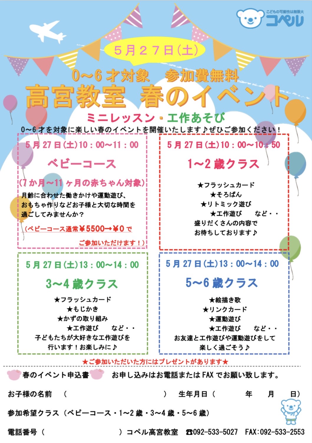 高宮教室|0~6歳対象 春のイベント開催!