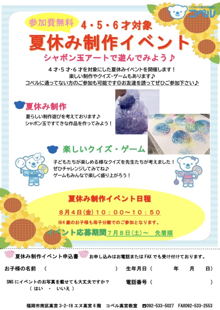 夏休み制作イベントを開催いたします!