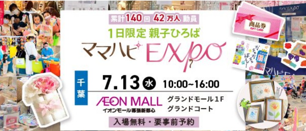 07/13(水) 千葉市美浜区のイオンモール幕張新都心 にておこなわれる「ママハピEXPO」に、プレナ幕張教室 が参加いたします。