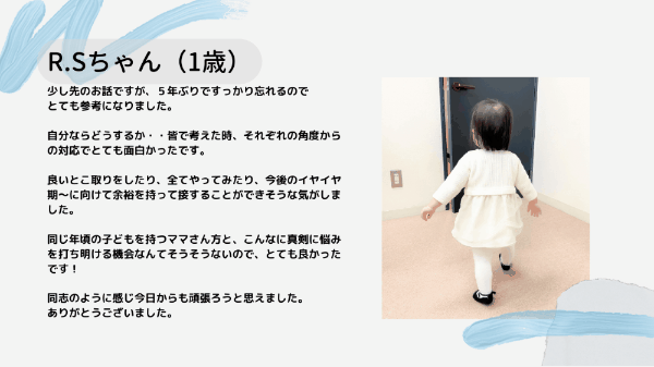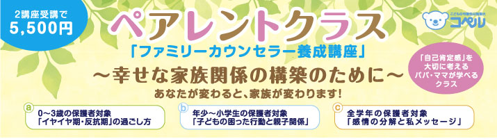 イベント 2024年09月01日 パパ・ママのための「ペアレントクラス」2024-2025 子育ての悩みを解決する特別な機会! ■ペアレントクラスとは? ペアレントクラスは、すべての保護者の方を対象とした、子育ての悩みを解決するための特別なクラスです。通室生のご家族はもちろん、外部の方も大歓迎! ■ペアレントクラスの特徴 保護者同士で悩みを共有 子どもの問題行動への効果的な対応を学ぶ 脳の成長段階について理解を深める 学んだことを実践するためのサポート ■クラス詳細 対象:全ての保護者(通室生・通室生以外含む) 時間:60分 テキスト: ・「イヤイヤ期・反抗期の過ごし方」 ・「子どもの困った行動と親子関係」 ■よくあるご質問 [開く] Q:夫婦で参加できますか? A:はい、可能です。ただし、定員の関係でお一人のみとなる場合もございます。 Q:子どもを連れて参加できますか? A:可能ですが、リラックスしてクラスに参加いただくため、可能であればお子様をお預けいただくことをおすすめします。 Q:通室していない友人と一緒に参加できますか? A:もちろんです。ぜひお友達とご一緒にご参加ください! ■お客様の声 ■開催スケジュール この記事をシェアする