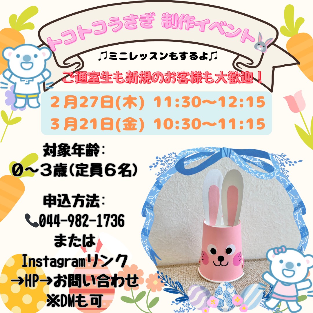 そのイースターにちなんで、コペル鷺沼教室では春のイベント『トコトコうさぎ制作イベント』を開催します♪