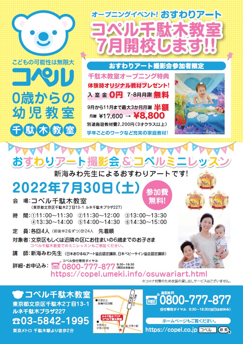 新海みわ先生によるおすわりアート撮影会&コペルミニレッスンを行います!