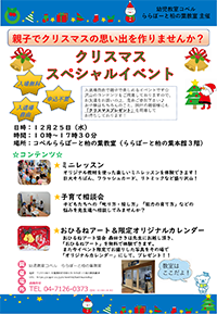 12/25(水) 千葉県柏市のららぽーと柏の葉教室 にて「クリスマス スペシャルイベント」を開催いたします。