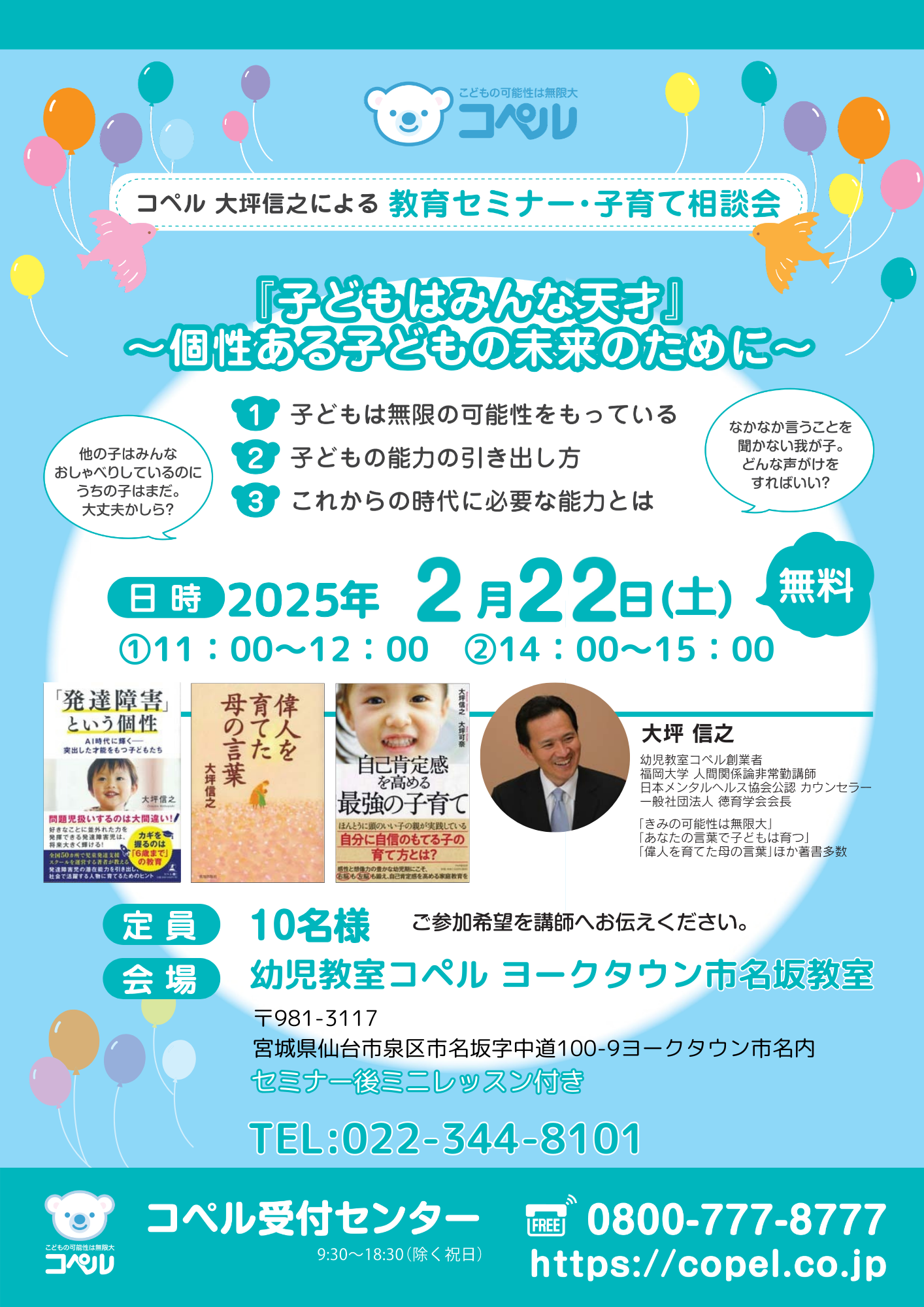 コペル 大坪信之による子育てセミナー&コペル講師によるミニレッスンを開催いたします!